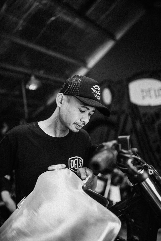 After being schooled in the world of engines, I worked all over Java as a mechanic, building up knowledge and experience on a huge range of bikes. I joined Deus in 2013 as a mechanic. However, my interest quickly shifted towards custom motorcycles - bikes that dare to stand out while still being comfortable to ride. I dived headlong into the custom world. I began turning ideas that lived only in my head into reality, I quickly realised that every detail needs to be considered.