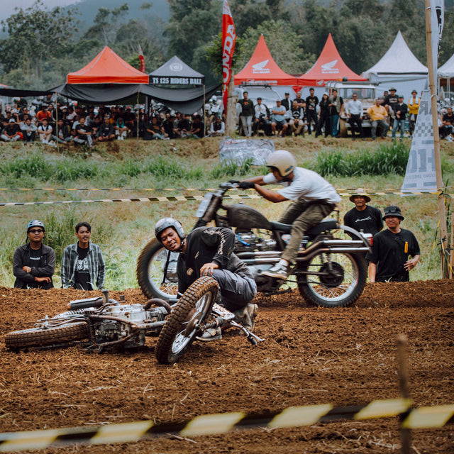 Kami turun hampir di semua kelas, bahkan Wawaw sempat terlempar keluar track di tengah-tengah sengitnya persaingan di kelas FFA Two Stroke hingga harus dibawa ke ruang media dan motornya mengalami patah pada pedal kopling dan rem depannya , Geri & Dede juga harus gugur di kelas FFA Four Stroke & FFA Horizontal dimana persaingan di kelas tersebut juga sangat kompetitif dan sengit , kami tidak terlalu bersedih karena kami tahu hari ini bukan tentang menang kalah , namun tentang bersenang-senang tapi kami juga ingin merasakan sedikit euphoria kemenangan yang akhirnya diberikan oleh Dewa Dimas di kelas FFA Big Bore yang mendapatkan juara 1 setelah jatuh bangun beberapa kali di kelas lainnya.