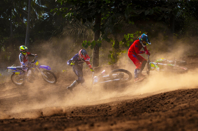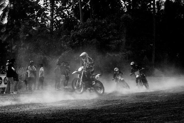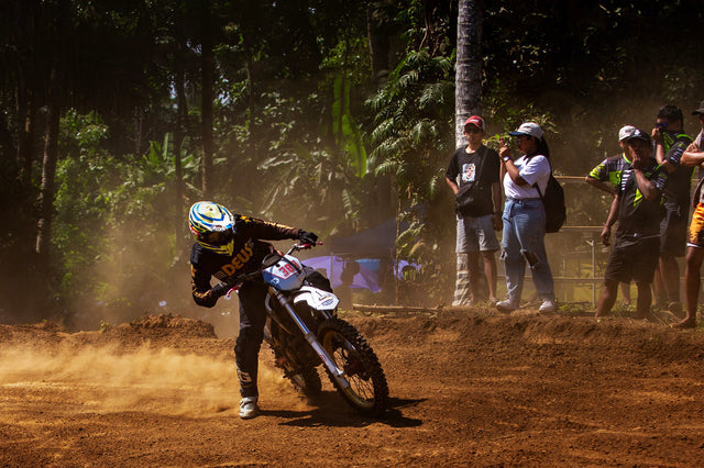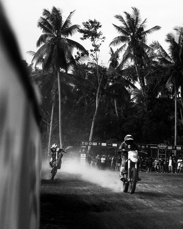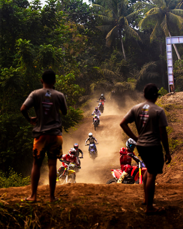 No time to sip Bali Kopi and debate the weather, though, as he was also in the next event, the GTX16. The Trail Standard 155cc Class. Factory standard and more a test of each man’s fortitude. His first race cruised along alright, nestled somewhere in the pack—a spot perfect for improvement. His second heat was less Sherlock and more slapstick, tumbling out three laps in, turning his trophy dreams into a soggy biscuit faster than you can say ‘Tidak apa apa!’