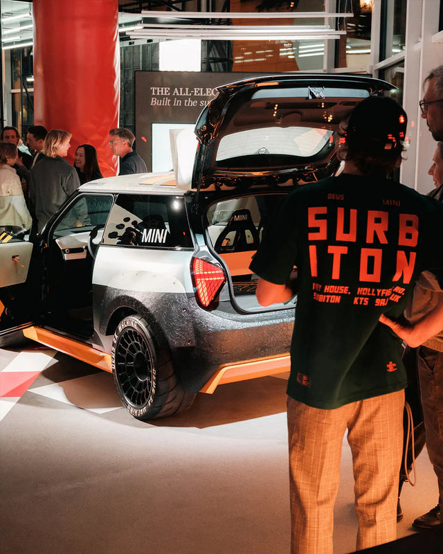 The MINI Pavillon was was packed shoulder to shoulder, buzzing with press, friends of the brand, and a sea of MINI and Deus devotees. If there was ever a moment that confirmed this collaboration had legs, it was right there in the heart of the city.