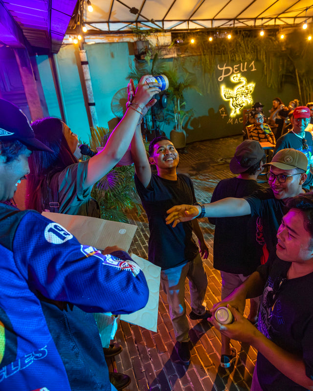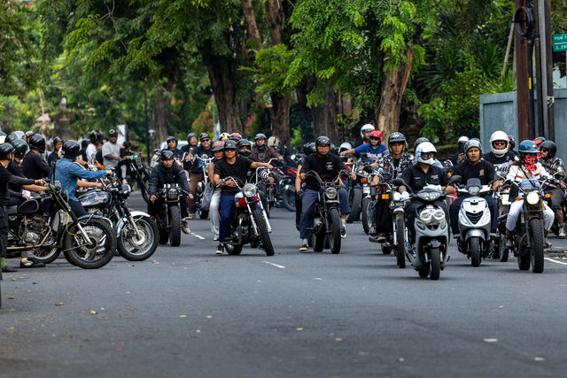 Kami berkumpul di tengah Denpasar, di sebuah kedai kopi sederhana yang akrab bagi warga lokal. Sepanjang satu blok dipenuhi motor; arus kedatangan yang tak henti membuat lalu lintas tersendat dan seluruh area parkir penuh. Obrolan saling bersahutan, menyelimuti suasana dan membangun energi. Di tengah kerumunan yang kian padat, rasa antusias pun perlahan berubah menjadi kegembiraan yang membara.