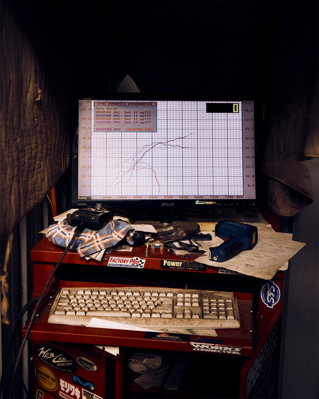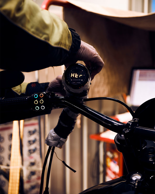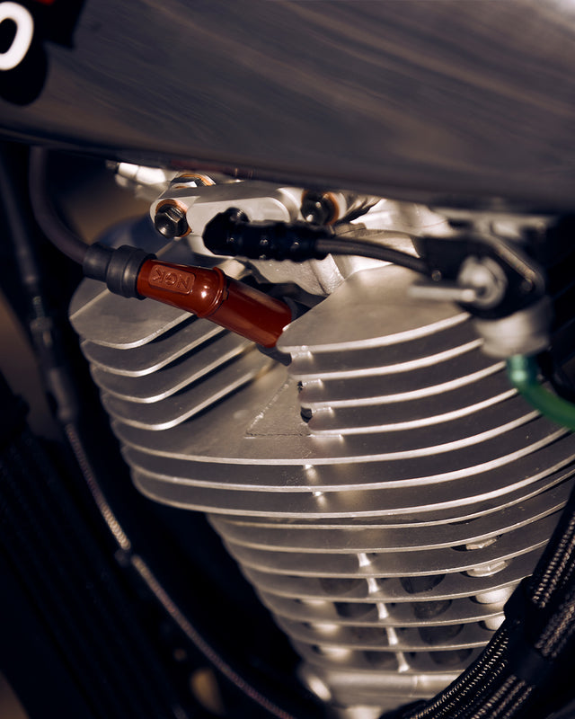 Not wanting to stray too far away from the original styling of the XT, Jeremy kept the original body work. The tail loop was brought forward 1.5 inches and the rear fender re-positioned for a more aggressive look. A custom seat base was built around the new tail with the profile tapering towards the rear, covered in alcantara and perforated black vinyl contrasted with a subtle red stitch. The front fender was shortened and a JVB headlight shroud was modified to fit the front end of the 500. Analogue speedos, switch blocks and lighting were the next to be hauled into the twenty first century. The North Star was treated to a whole catalogue of top shelf parts. Motogadget Motoscope Tiny speedometer is now recessed in the top clamp. Kozo Thunderbolt headlight is nestled in the JVB Headlight surround. Kellermann Atto blinkers illuminate each 4 corners - all of which is controlled by a Motogadget mo.Switch Pro on the handlebars. The last trick piece of kit is the Motogadget mo.lock FOB that replaces the ignition switch.