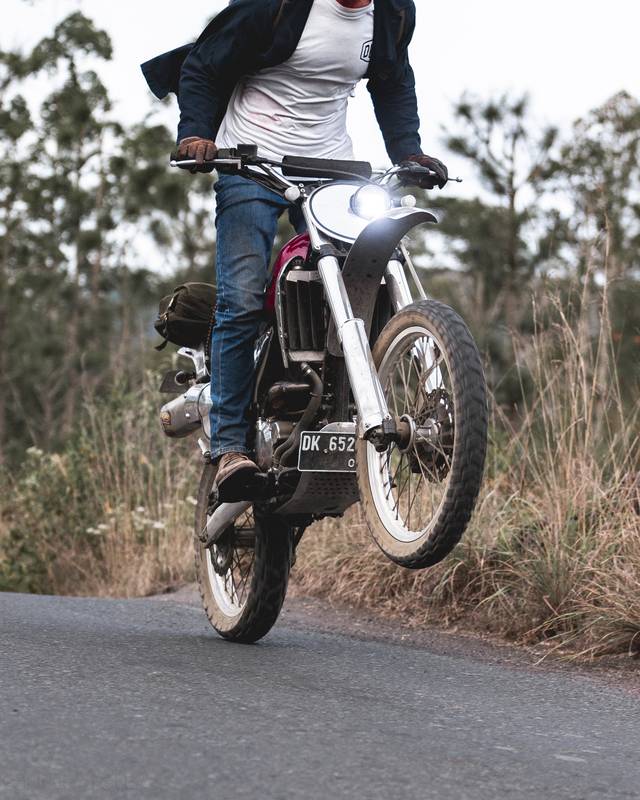 He wanted simplicity and refinement. Subtle and efficient. He also had a few personal requirements; a little rear rack to strap on a day’s worth of gear, discrete rear foot pegs to enable his son to ride pillion with him, a bigger rear cog to make the long rides to Uluwatu a little less punishing and tyres with more road than off in them.