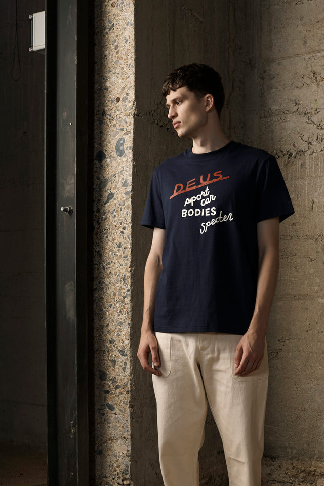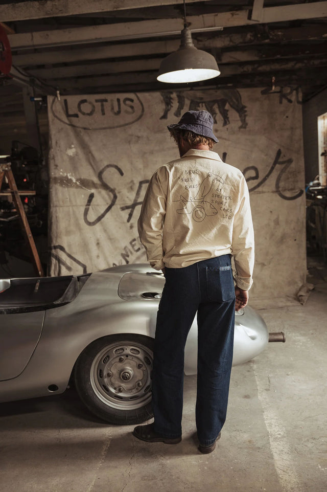 With this, a capsule range that considers detail, type and discerning material selection that seamlessly captures the design sensibilities of both Specter and Deus was a natural next step. Imbued with a vintage, dead stock sensibility across styling, fabrication and manufacturing methods, the fifteen piece range - tees, outerwear, pants, accessories - is heavily influenced by car design, as well as apparel and art of the 1960s.