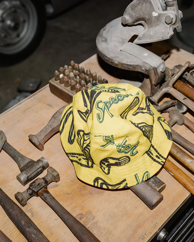 Rounding out the limited edition range, is the vintage-inspired Specter Cap - a play on the shallow fit pillbox cap - and the Specter Tools Bucket hat, crafted in satin and cotton respectively - each offering functional, style-led design.