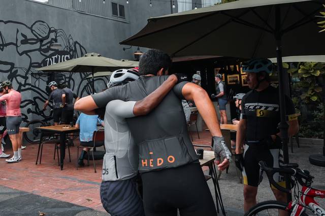 With the hardest part of the climb behind us and we’d once again reached a smooth paved road, we continued the ascent until we reached the very top of the mountain, Saddle Peak, an unbelievably famous and breathtakingly beautiful rest stop in the Santa Monica Mountains. We met up with out SAG car there and it was thankfully loaded with ice cold Corsa Co hydration tonics. Funnily enough, no one was complaining about how hard the climb was, in fact, everyone was sharing their own stories of how they’d conquered the climb and how much fun it was.