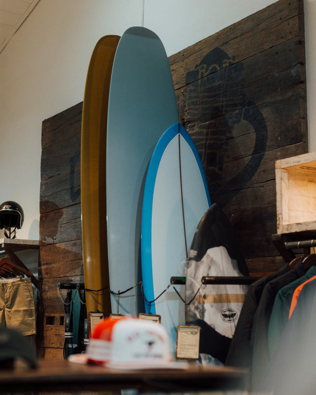 There’s a selection of our choicest wave riding boards whether you’re looking for them short or tall, we got them all. Looking for a new pavement and rice paddy ship, we got a couple of them to give you an idea of what we can do. There’s art, music and even some of our movies playing on a loop.