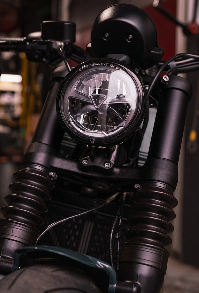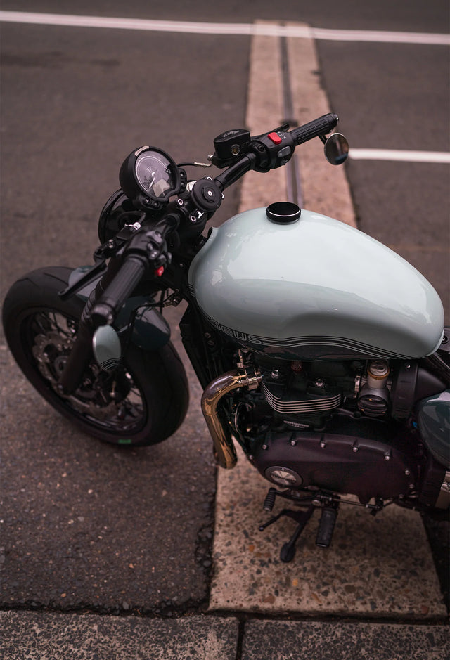 In the cockpit Motogadget mirrors, Indicators and grips keep everything cohesive and tidy. The final touches to tie this all together in a nice little bow is the custom seat and paint from Bad Arse Trim Co and Juds Customs.