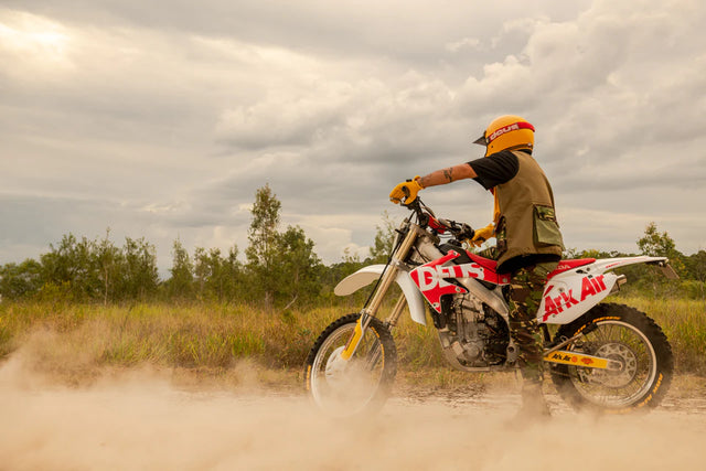 Introducing Deus x Bleach. A shared desire to celebrate the fundamental pursuits of fun takes form in this collaboration. We let Mikey Ojeda of Bleach Design Werks loose on tees, hoodies, jerseys and more, all made in the USA. Inspired by his love of motocross and the city of Los Angeles these threads showcase the same freestyling flavor of Mikey’s custom machines.