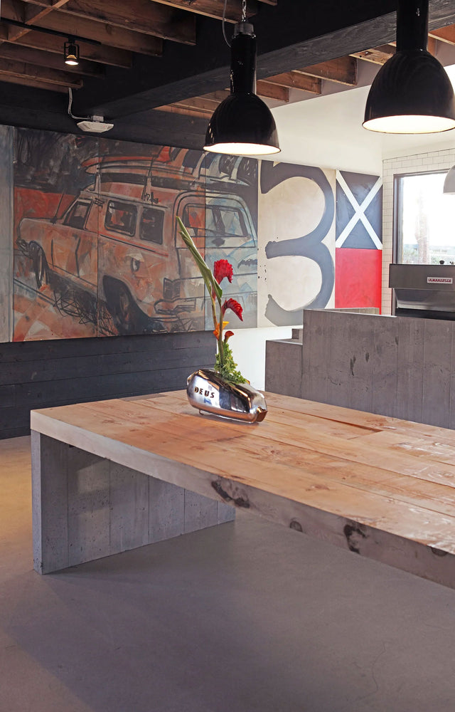 Darkened and crispy on the outside. Chewy and delicious on the inside. Welcome to The Emporium of Postmodern Activities. Deus Ex Machina’s third addition to its global ground fleet of marvel outlets is proudly located in Venice, CA—one of the most vibrant hubs of surf, bicycle, and motorcycle culture on planet Earth.Featuring in-house custom built motorcycles by Michael “Woolie” Woolaway, hand-shaped and hand-glassed surfboards, clothing and artwork designed at the House of Simple Pleasures in Camperdown, Sydney, and brewcraft from Vittoria as well as an intimate selection of fine apparel, accessories, footwear, motorcycle gear, books, magazines and more —the gas station turned flower shop turned Deus Ex Machina depository draws from its grand vessel of world flavors and stands at the ready to astonish and serve its citizenry.